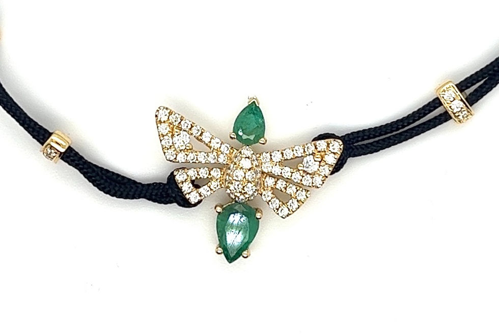 18K Yellow Gold Emerald Bee Woven Bracelet with Diamonds