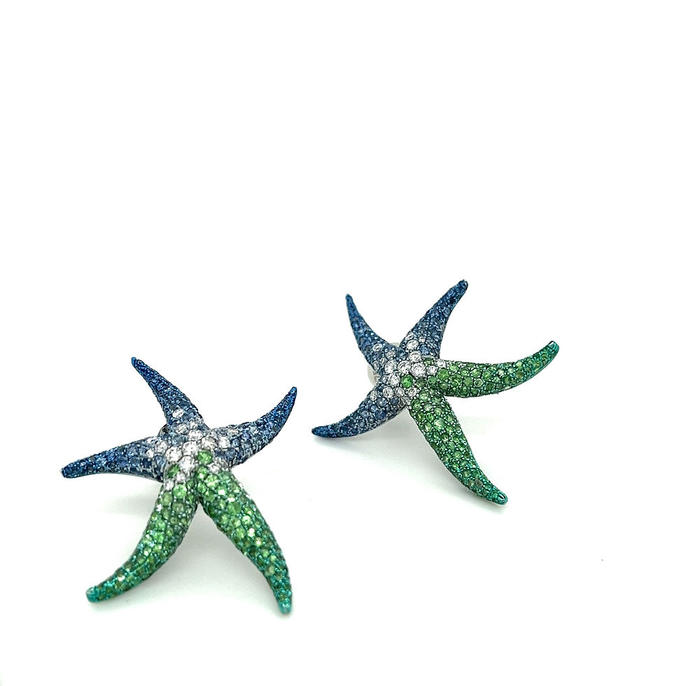 18K White Gold Green Garnet & Sapphire Earrings with Diamonds