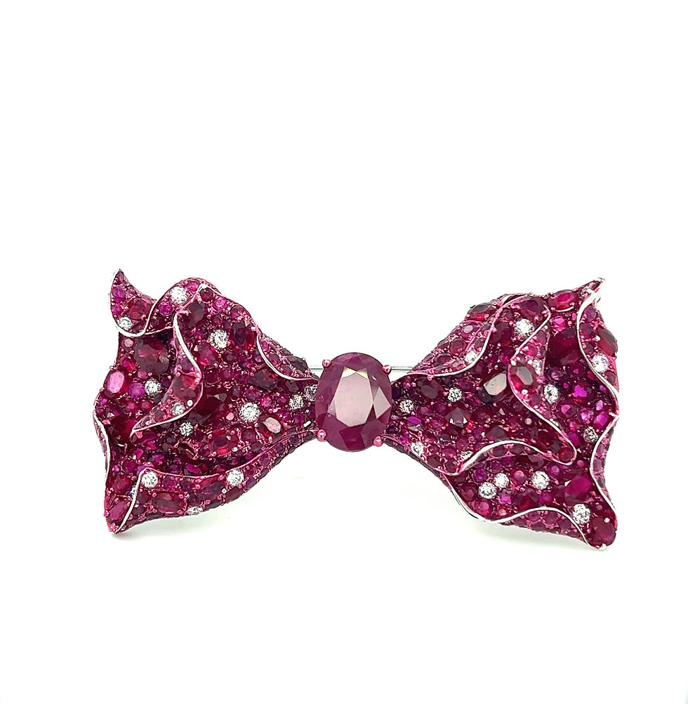 18K White Gold Ruby Bow Brooch with Diamonds