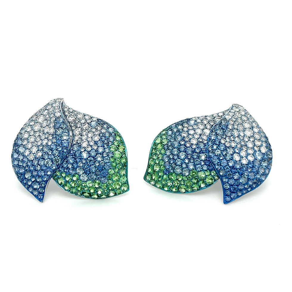 18K White Gold Blue Sapphire Earrings with Diamonds